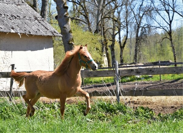 Ema: Voore Adella (i.Apollo; e.Rella) on sündinud 2009.a, kollase värvusega, tk.134cm. Üleriigilisel ülevaatusel 2012 aastal Saaremaal saavutas "I auhinna". Väga suure ja avatud liikumisega mära, kes on olnud laste sõiduhobune kui ka leidnud kasutust rakendis. Voore Adella isa Apollo 778E on meie talli sugutäkk, kes pärandab oma suurepärast liikumist ka oma järglastele. Hetkel võistleb edukalt koolisõidus. Adella on ka tunnustatud sugutäkk Voore Roonini E007 ema.