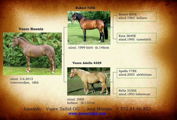 eesti tõugu täkk Voore Roonin(e: Voore Adella, i: Raksel),