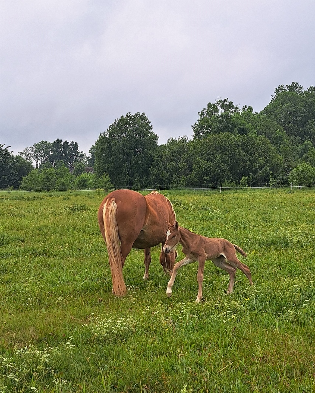 Emä: Rosie (i.Reims; e.Rosiina, ei.Rotser) on syntynyt 2017.a, sk.144cm. Harvinaisen hyvällä tasapainolla ja ylämäkeen liikuva tamma. Temperamenttinen ja helppo ratsastaa.